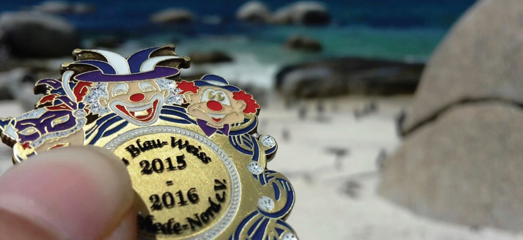 mehr Sinn einen Orden zu vergeben, der einen festen Platz an einem Kleidungsstück hat? Macht es nicht mehr Sinn einen Pin zu vergeben, den z.B. die Tanzgarden an ihren Trainingsanzügen oder der Elferrat an den Uniformjacken befestigen kann? Quasi der Pin mit Sinn! Auf diese Weise kann der Pin auf Reisen mitgenommen werden wie damals die Abzeichen